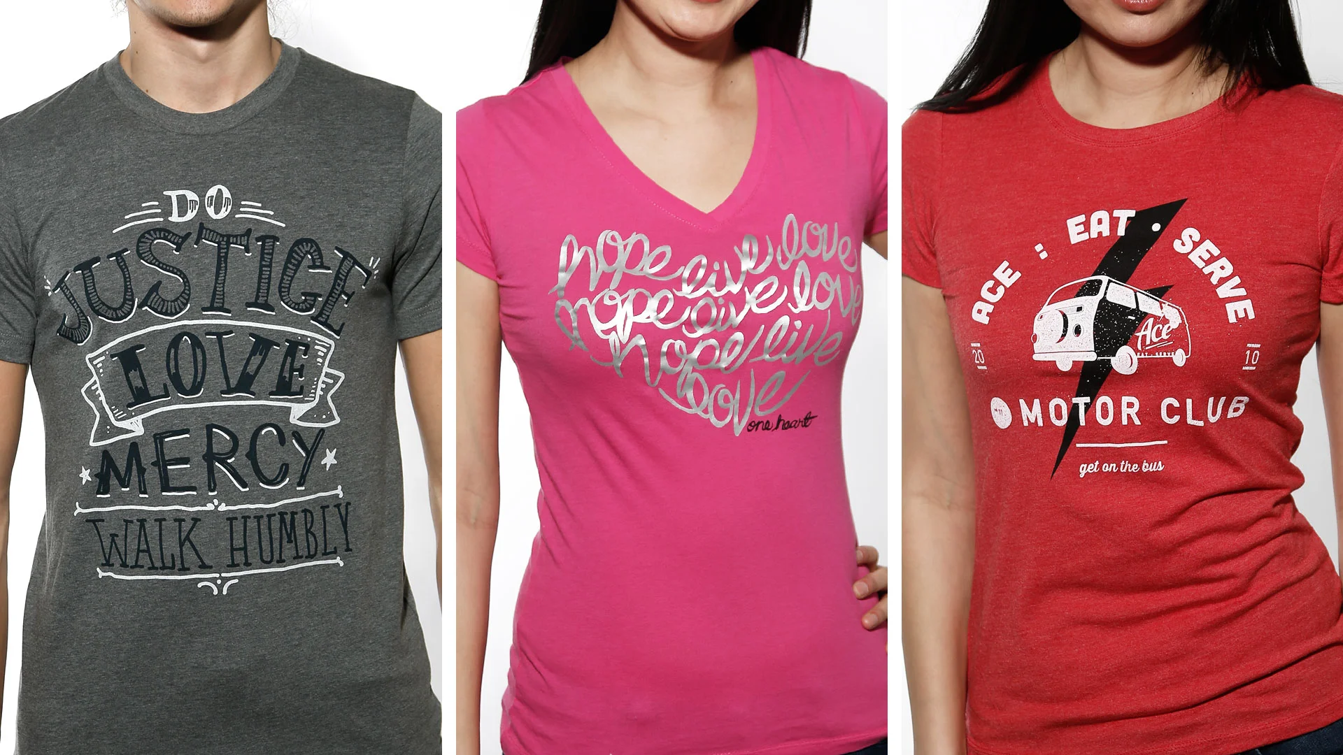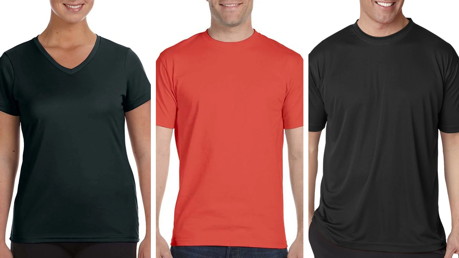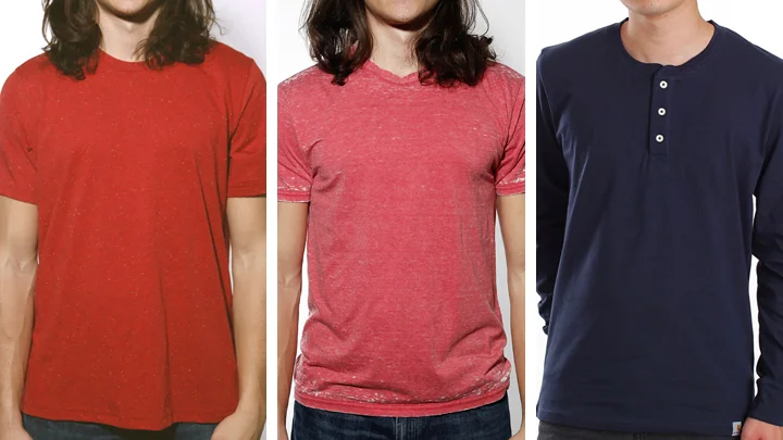 crew-necks, v-necks, scoop necks, tanks, muscle tees, boatneck